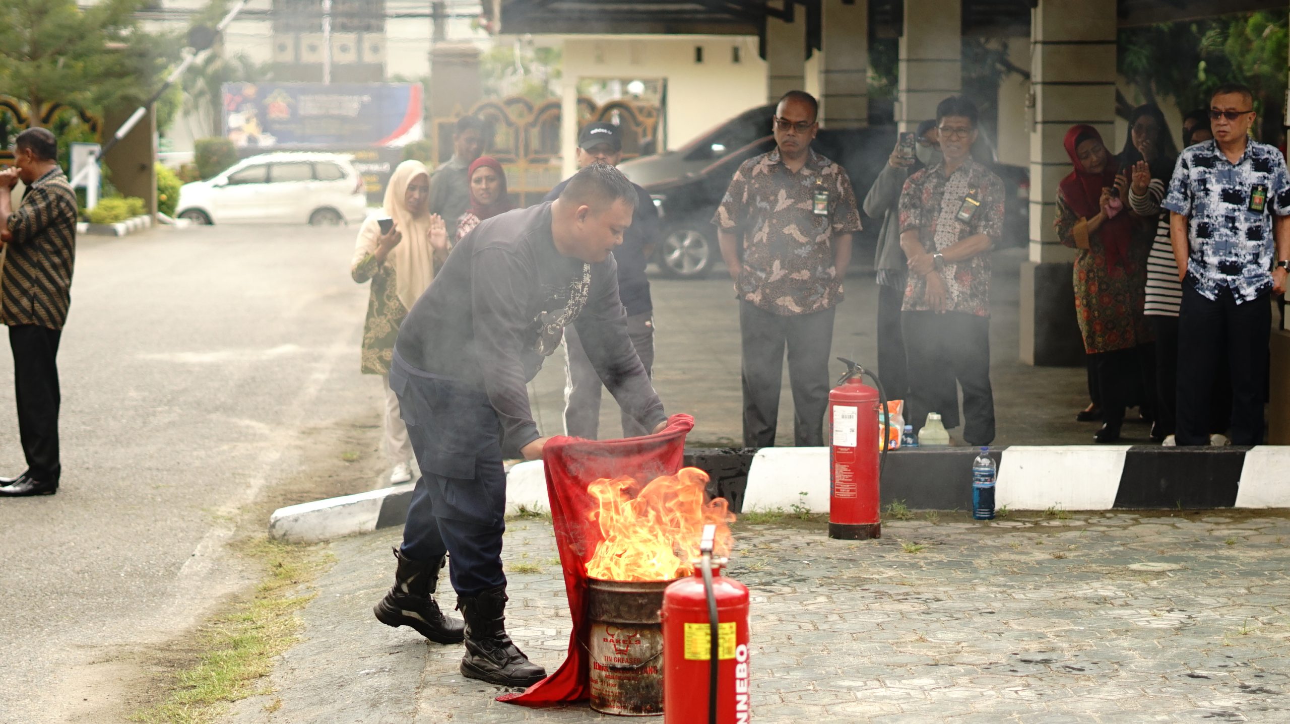Kegiatan ini dilaksanakan bekerja sama dengan Badan Penanggulangan Bencana Daerah (BPBD) Kota Gorontalo, yang menurunkan tim pemadam kebakaran untuk memberikan pelatihan dan demonstrasi langsung kepada para pegawai mengenai cara menangani kebakaran di lingkungan kerja.