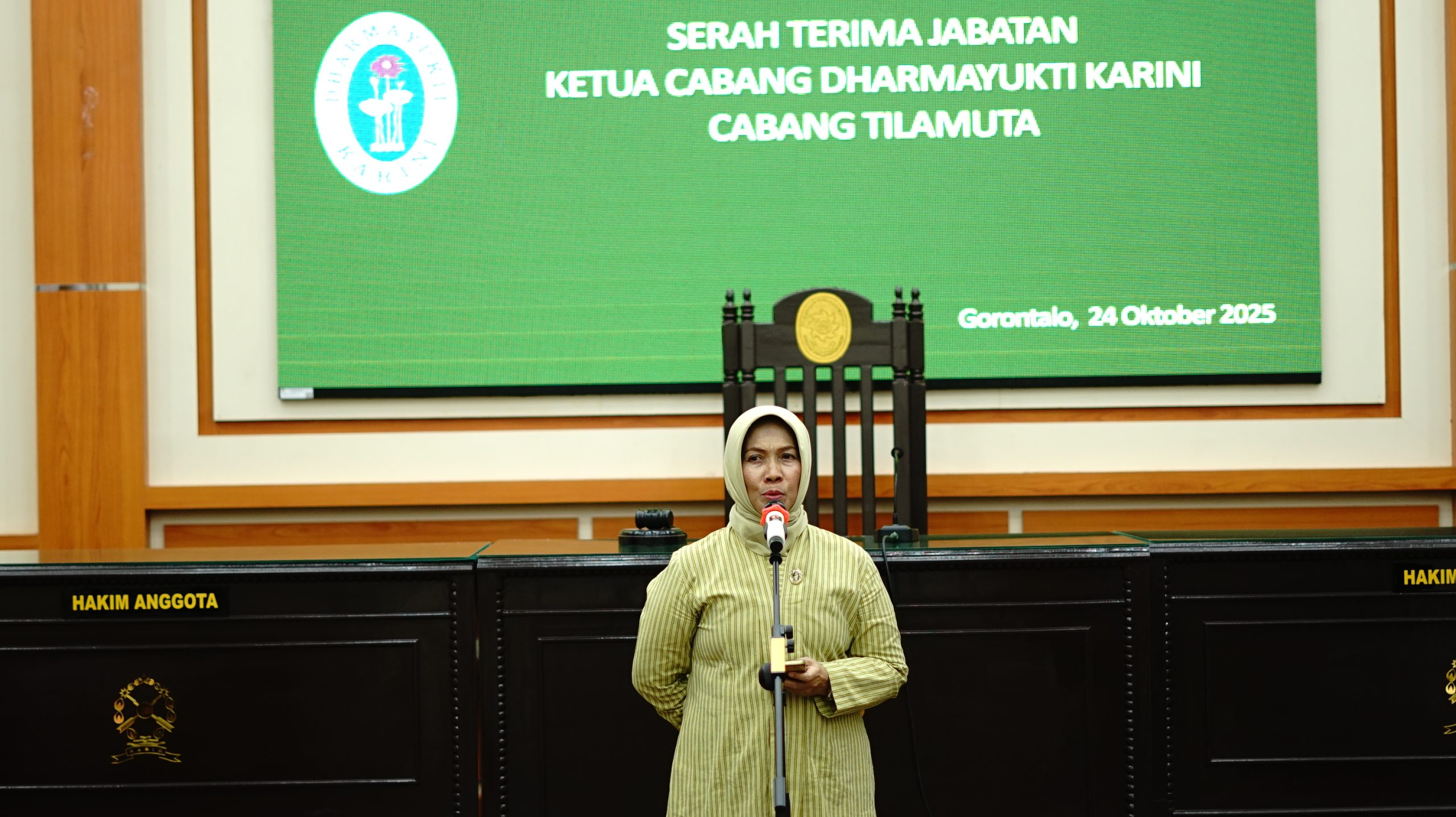 Gorontalo, 27 Oktober 2025 – Bertempat di ruang sidang utama Pengadilan Tinggi Gorontalo, pada pukul 15.00 WITA telah dilaksanakan acara Serah Terima Jabatan Ketua Cabang Dharmayukti Karini Cabang Tilamuta dari Ny. Rahmanancy Jayadi Husain, S.E. kepada Ny. Kristiana Juliarti Mahendra, S.Psi.
