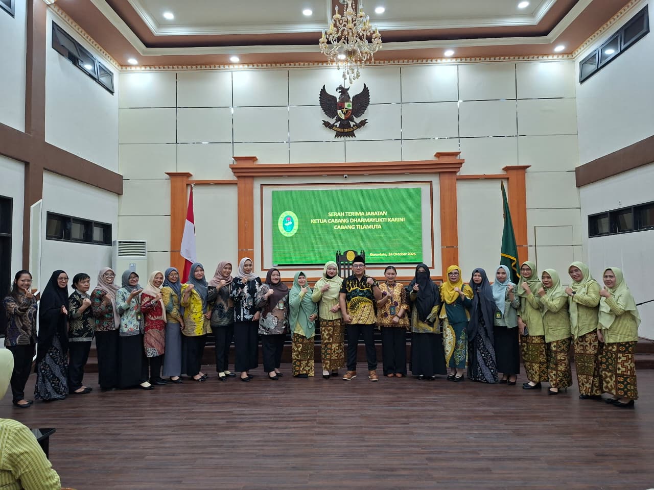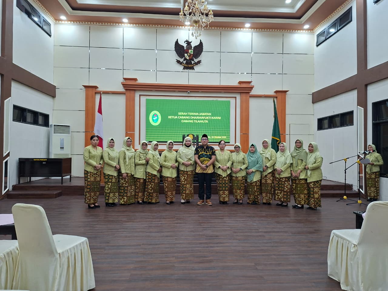 Serah Terima Jabatan Ketua Cabang Dharmayukti Karini Tilamuta dari Ny. Rahmanancy Jayadi Husain, S.E. kepada Ny. Kristiana Juliarti Mahendra, S.Psi., Disaksikan Ketua Daerah Dharmayukti Karini Provinsi Gorontalo