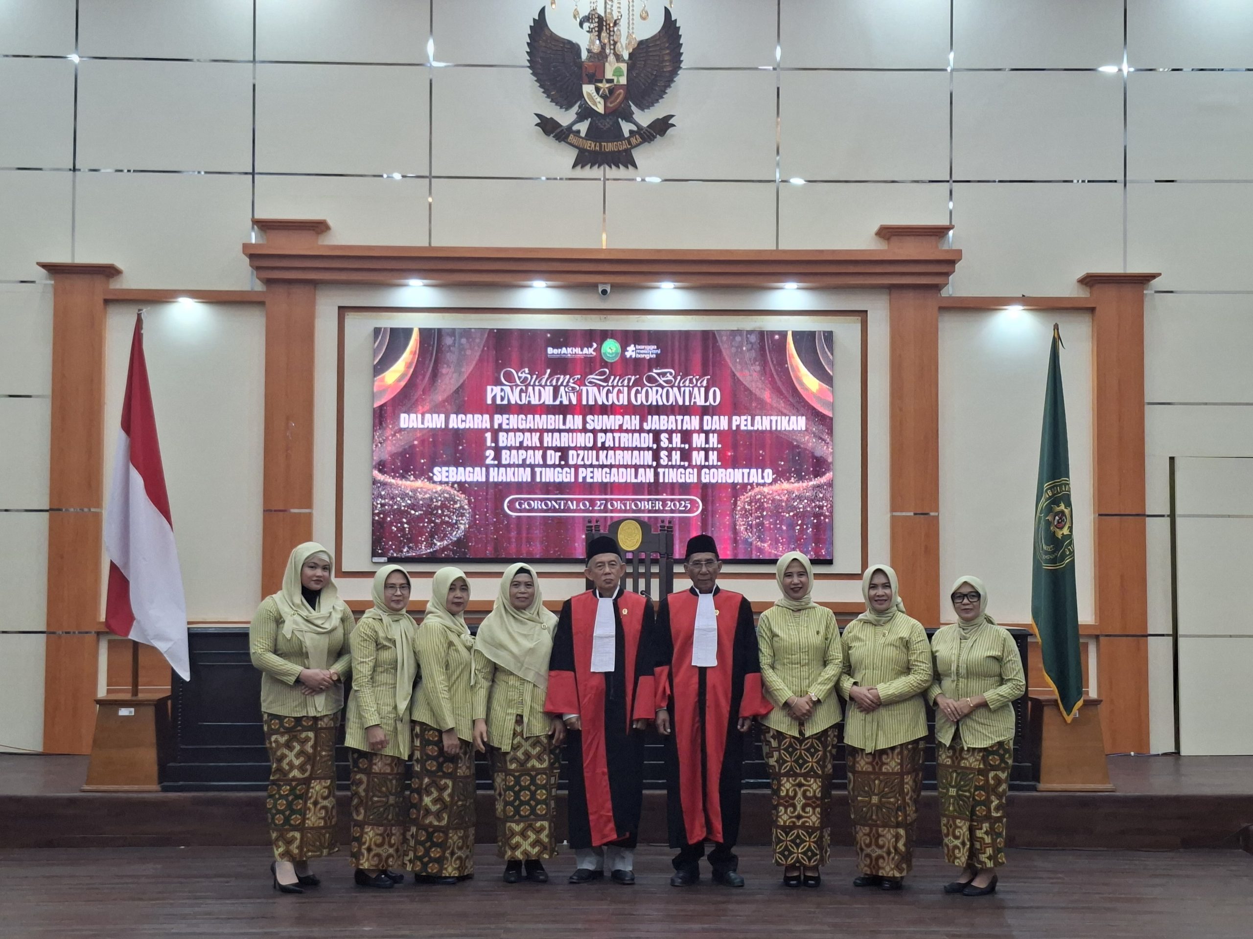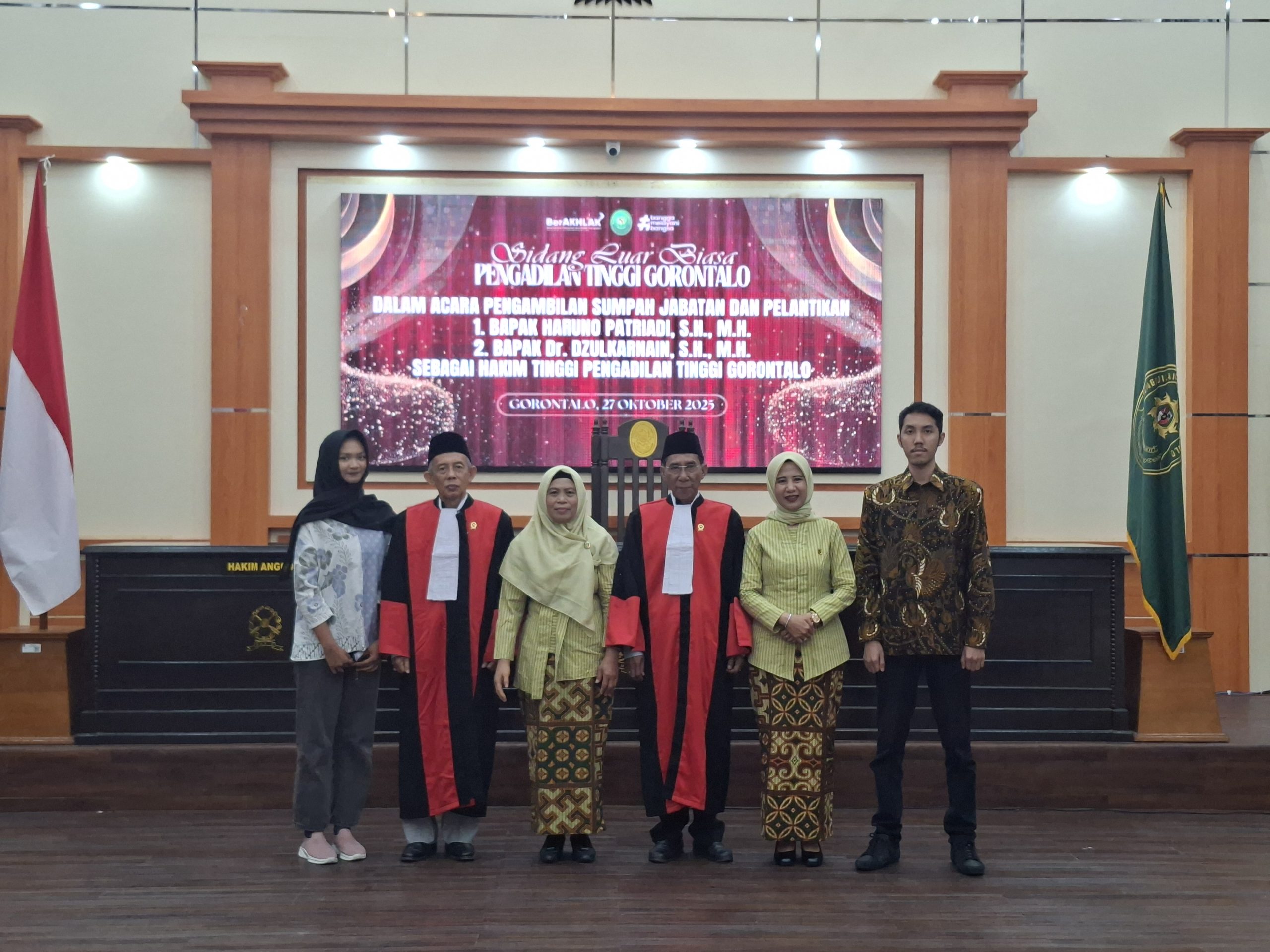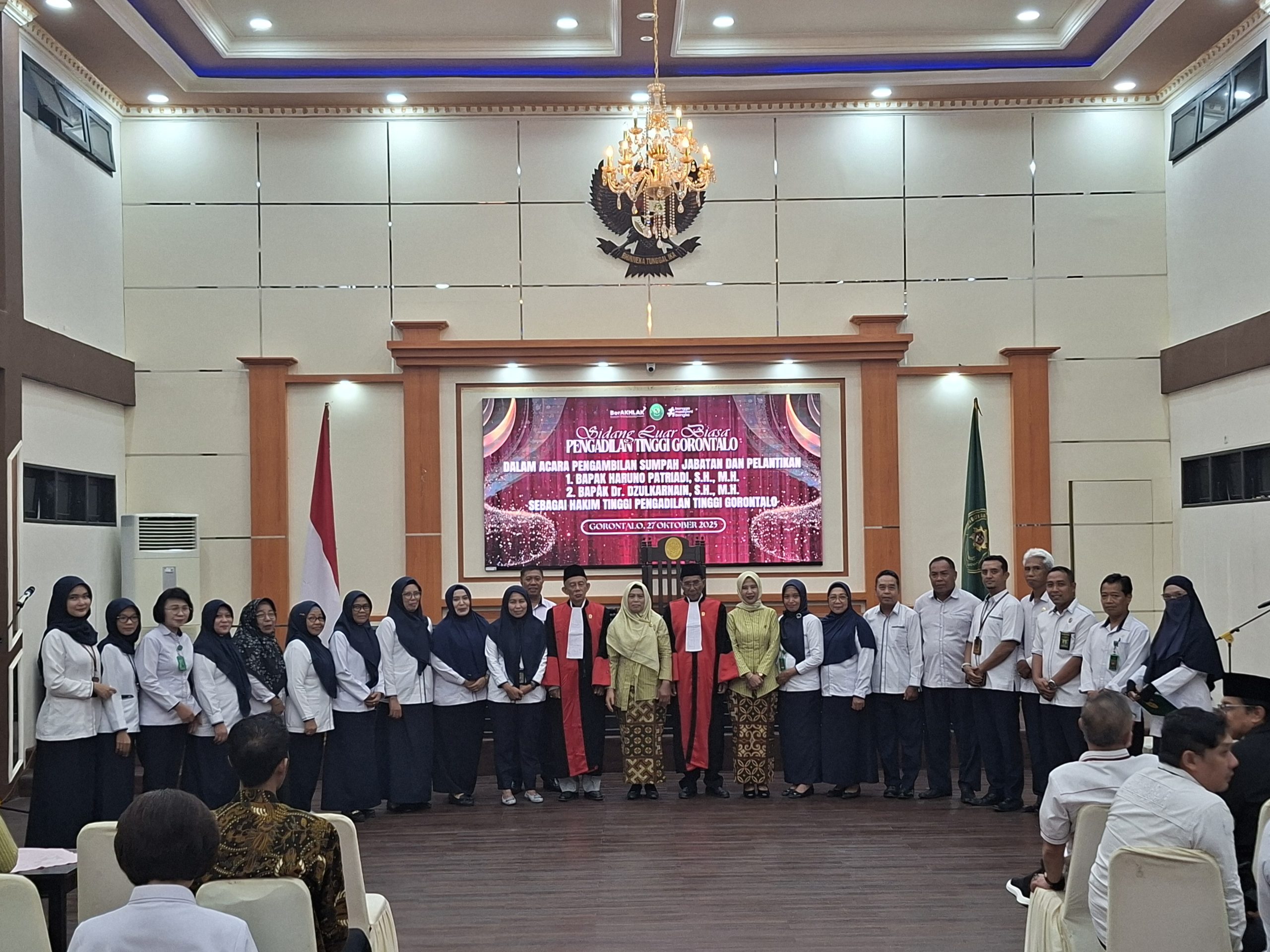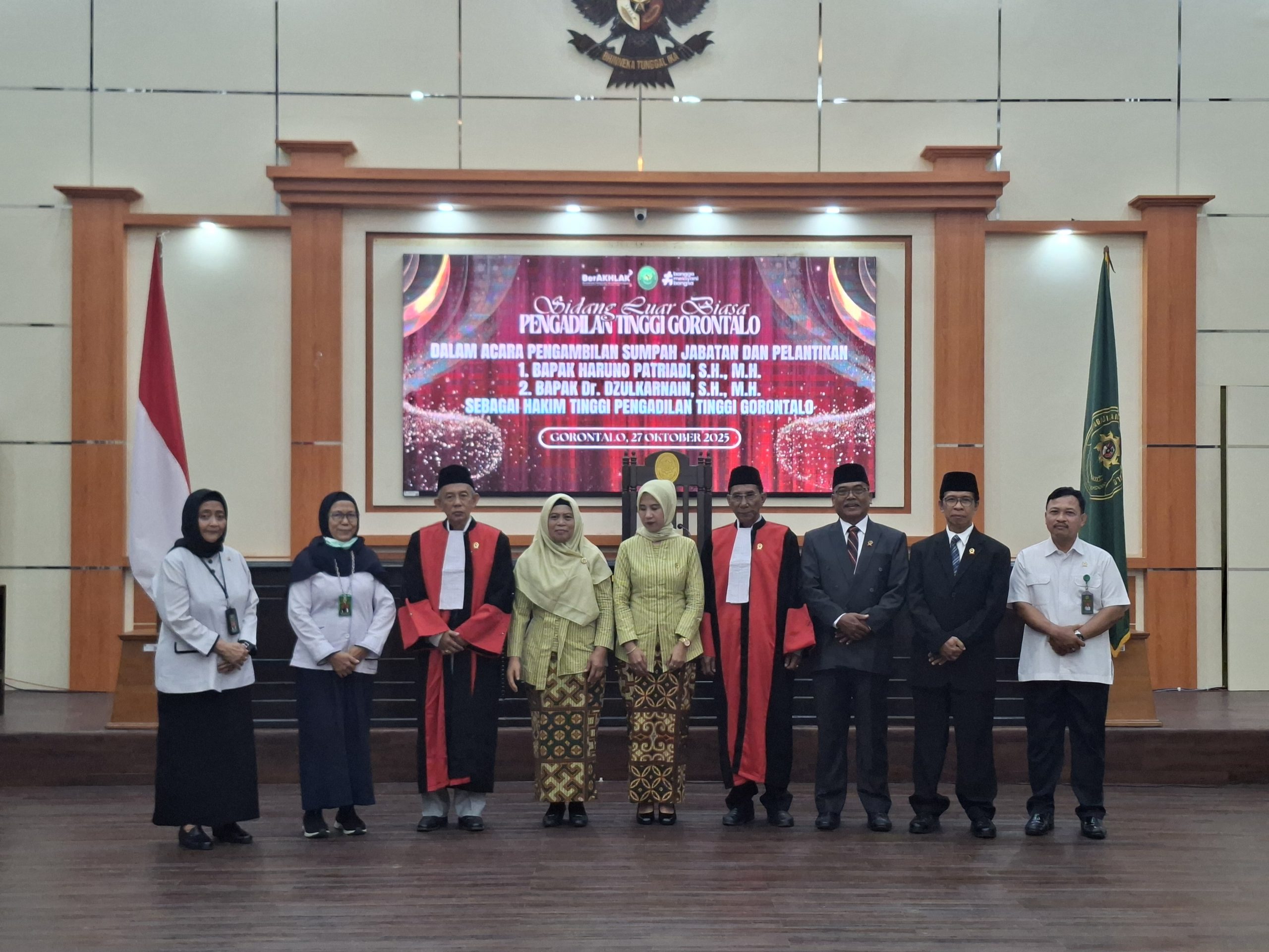 Gorontalo, Senin 27 Oktober 2025 – Pengadilan Tinggi Gorontalo menyelenggarakan Sidang Luar Biasa dalam rangka Pengambilan Sumpah Jabatan dan Pelantikan Hakim Tinggi yang berlangsung pada pukul 10.00 WITA di ruang sidang utama Pengadilan Tinggi Gorontalo.