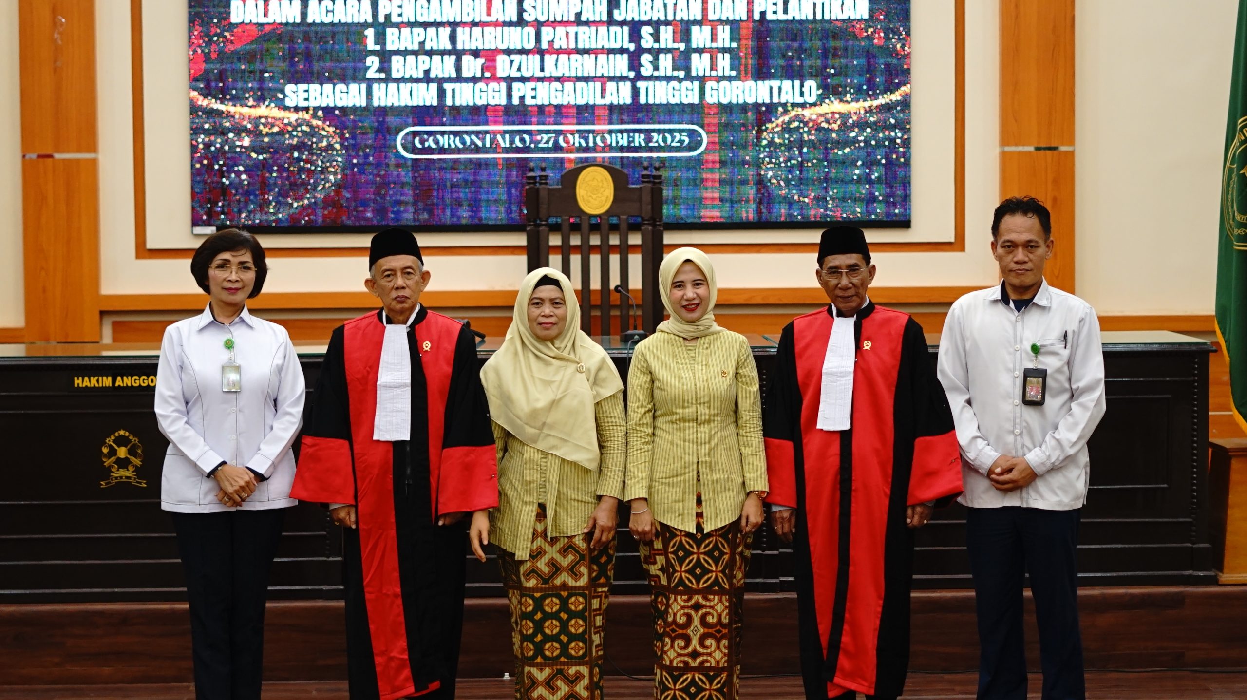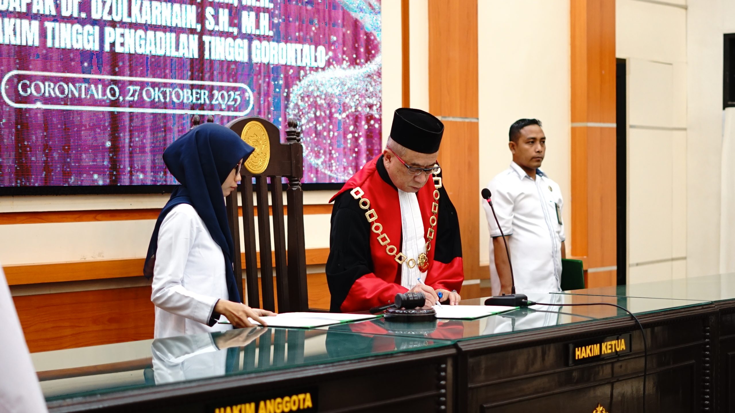 Dalam kesempatan tersebut, YM Ketua Pengadilan Tinggi Gorontalo, Dr. Yapi, S.H., M.H., secara langsung melantik dan mengambil sumpah jabatan terhadap: