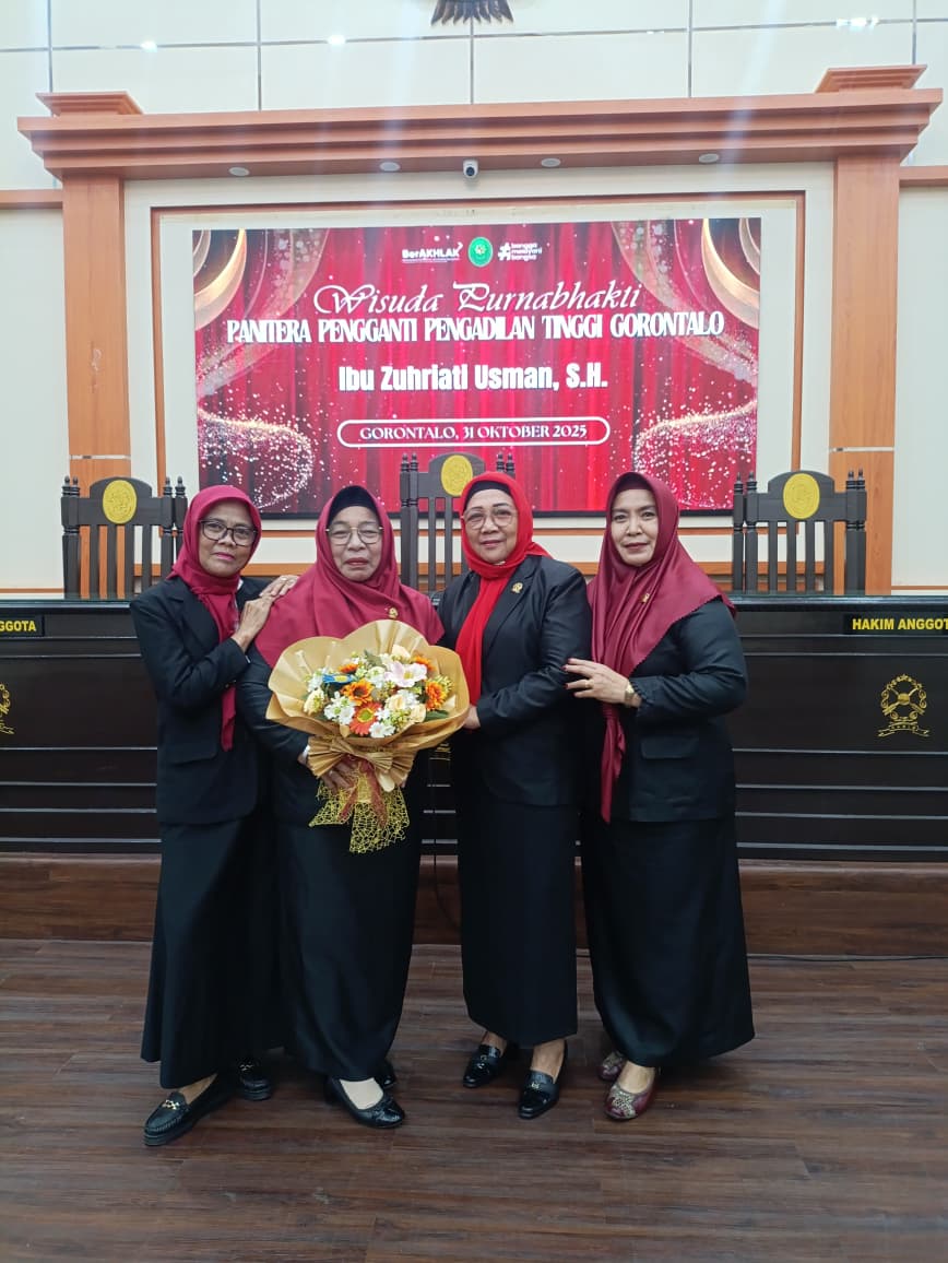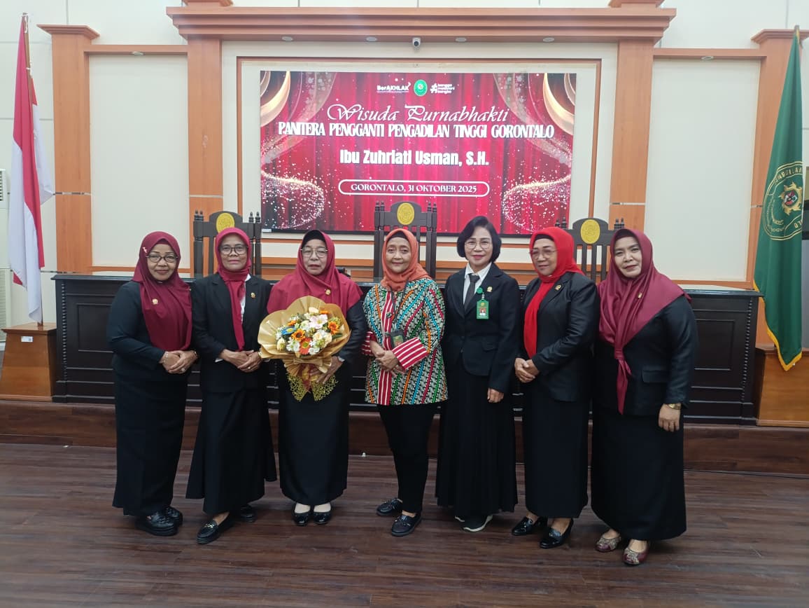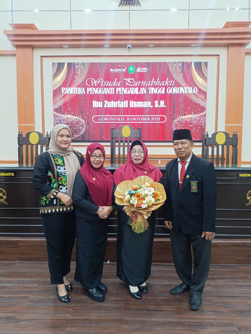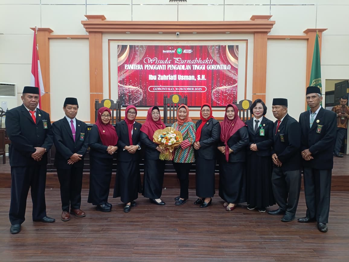 Gorontalo, 3 November 2025 – Jumat, 31 Oktober 2025, bertempat di Ruang Sidang Pengadilan Tinggi Gorontalo, telah dilaksanakan Wisuda Purnabhakti Panitera Pengganti atas nama Ibu Zuhriati Usman, S.H. Acara yang dimulai pukul 09.00 WITA tersebut berlangsung khidmat dan penuh haru.